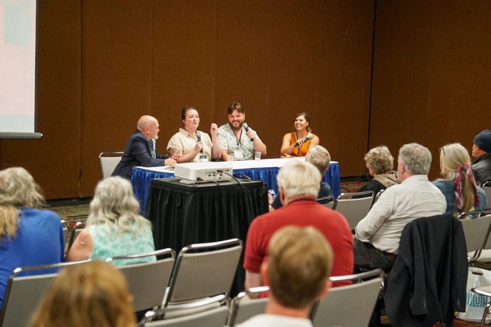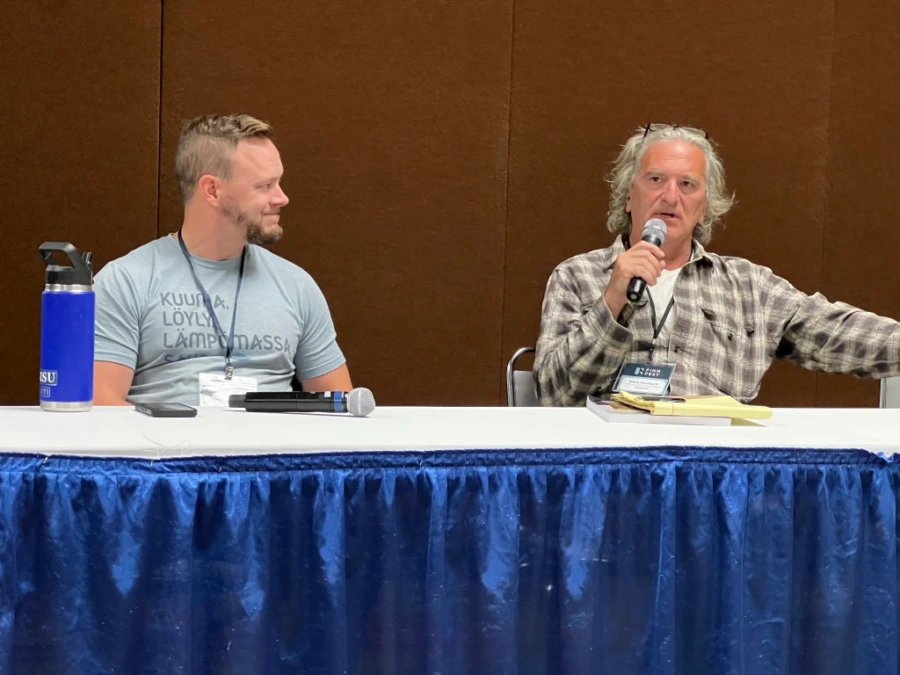 Jim Kurtti, master storyteller and sherpa (or guide) to the next generation of storytellers headed a panel that talked about projects documenting Finnish sauna culture in the Upper Peninsula of Michigan. Videographers Daena and Amanda Mäkelä are a young couple who rediscovered sauna while living in the U.P. Their business, called 2nd Sandbar Productions, has undertaken a project to collect local sauna stories by holding interviews in a locally built sauna. Haley Goodreau was also present. She is creative director of Logbook Stories and received a grant from Finlandia Foundation National last year to support a sauna book project.