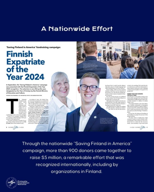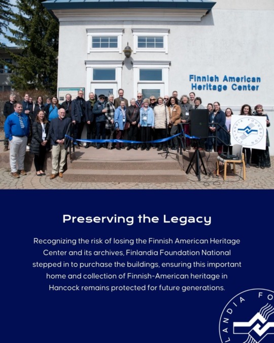 Through its nationwide “Saving Finland in America” campaign, more than 900 donors across the United States came together to raise $5 million. This remarkable collective effort—recognized internationally, including by organizations in Finland—ensured that the Finnish American Heritage Center and its archives remain preserved for future generations.
