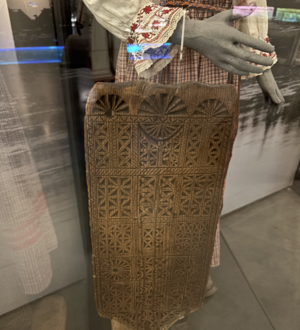 Ganova is also the founder of the Komi Home Museum in Tallinn, where she gave me a tour of Komi hand crafts. Amongst the collection were pairs of woven birch bark shoes and a birch bark backpack. Ganova told me that in these backpacks, Komi hunters would have carried shangas as a tasty “to go” snack.