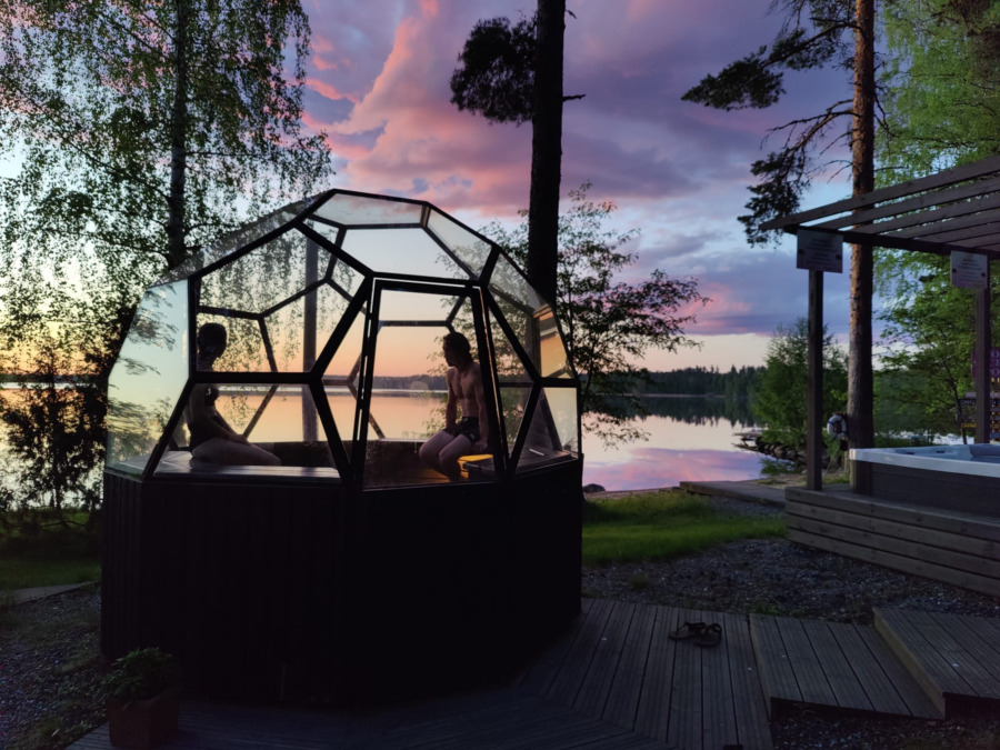 Our last destination was the Revontuli Resort, nestled beside Lake Iso-Virmas in what’s known as the darkest part of Central Finland—perfect for Northern Lights in winter. But even in summer, the light show didn’t disappoint. We bathed in gold and pink skies, the midnight sun painting everything in a dreamlike glow.