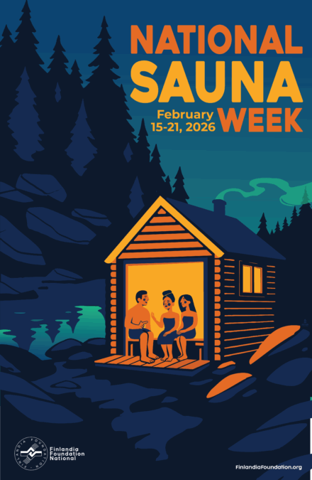 Finlandia Foundation National has designated February 15-21, 2025, as National Sauna Week, a celebration of the authentic Finnish sauna and its rich cultural significance. FFN chapters are encouraged to host events and can apply for a mini-grant of up to $500, with priority given to events scheduled during the official week. Applications are due by January 30, 2026, at 11:59 PST for events taking place between the period of January through March.